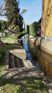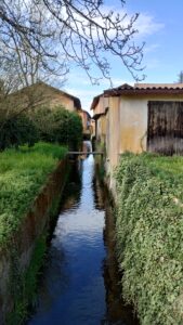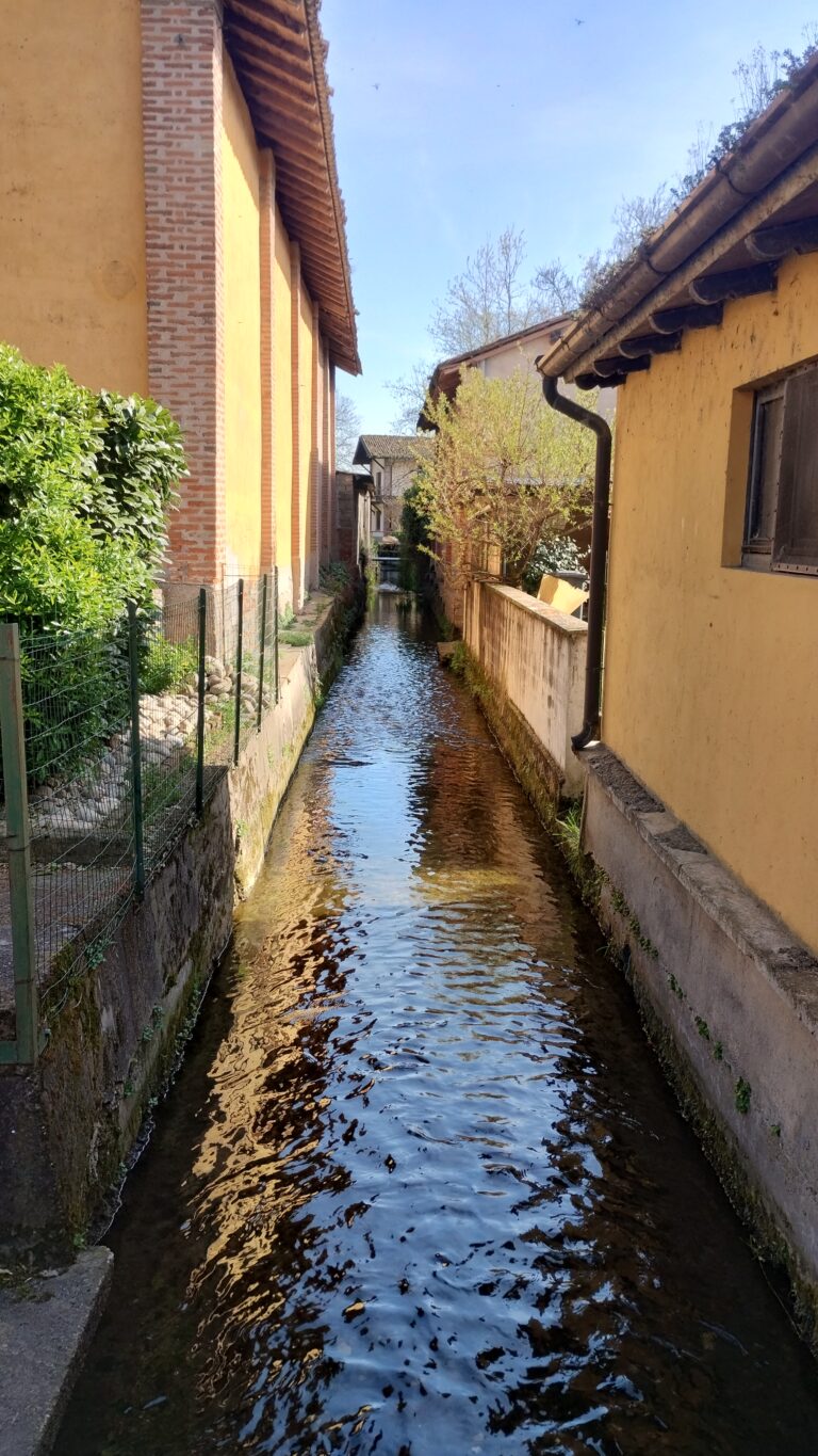 Gradella, con le sue case gialle profilate di mattoni rossi, i porticati ombrosi con le travature in legno e i viottoli che si aprono su cortili fioriti. La camminata di marzo ci ha condotti in questo piccolo angolo di pianura in cui il tempo sembra essersi fermato. Dell’antico nome Gardella rimane memoria nell’insegna del bar che si affaccia sulla piazza. È qui che il professor Buzzi ci racconta la sua storia: dalle origini, probabilmente altomedievali e longobarde, con notizie molto frammentarie, fino all’ammissione tra i borghi più belli d’Italia nel 2005. Un territorio di confine, scenario di lotte cruente per la supremazia, con il passaggio alterno da un signore all’altro fino alla definitiva acquisizione da parte della famiglia Maggi, nel XVII secolo. L’ultimo dei Maggi, il conte Aymo, viene ricordato per la cura rivolta al borgo che amava, per cui fece costruire la scuola, l’asilo, i bagni pubblici e il campo da calcio.
