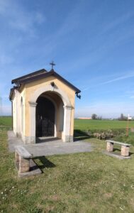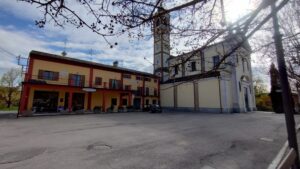 Adiacente alla piazza, la chiesa parrocchiale, dedicata alla Santissima Trinità e a San Bassiano. Edificata nel 1895 su una pieve preesistente di origine medievale, oramai fatiscente, si presenta con pregevoli affreschi del pittore Luigi Morgari. Attorno a essa si raccoglie il borgo: le caratteristiche cascine lombarde con le corti comunicanti, la villa Maggi, rossa con profili gialli, un laboratorio di restauro, due ristoranti, il caseificio. Qualcuno ci saluta con un sorriso mentre ci avviamo verso il cimitero, nel luogo dell’antico lazzaretto. Una cappelletta ricorda ancora i morti di peste, quella “manzoniana” del 1630, diffusa dai Lanzichenecchi. Intorno prati da sfalcio e silenzio. Siamo nel parco del Tormo e il paesaggio è disegnato dalle rogge, dai canali e dai fontanili, che salgono in superficie e sembrano scoppiare come bolle. Un borgo che custodisce con orgoglio la sua identità rurale e, come tutte le piccole comunità, trova la propria forza nella condivisione e nel sentimento di appartenenza a un territorio.
